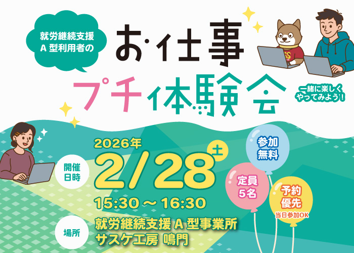 サスケ工房 鳴門では利用者を募集しています